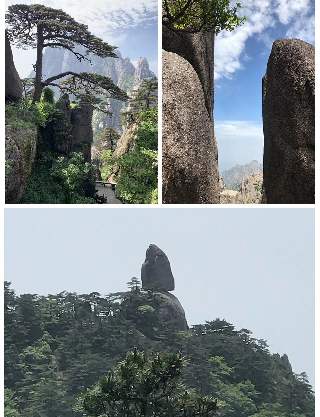 次日一大清早,大家又馬不停蹄的奔赴黃山之巔而去,先后乘索道纜車游覽了慈光閣、天都峰、國寶迎客松、玉屏樓景區(qū)、百步云梯、鰲魚洞、鰲魚峰、天海景區(qū)、光明頂、飛來石、探海松、黑虎松、白鵝嶺等名勝景點。