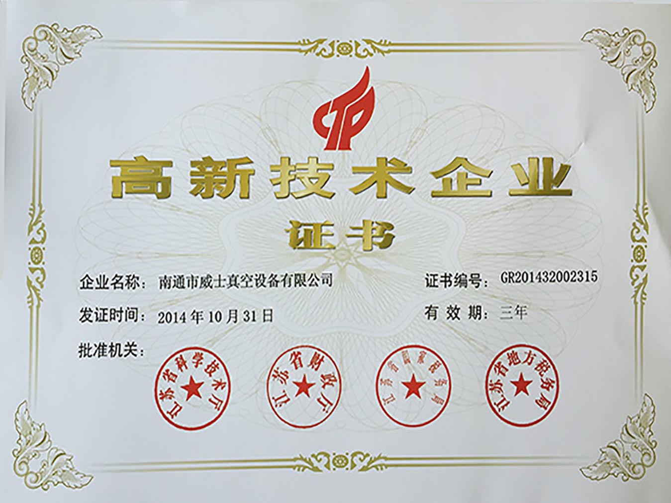 熱烈祝賀我公司榮獲國家高新技術企業證書