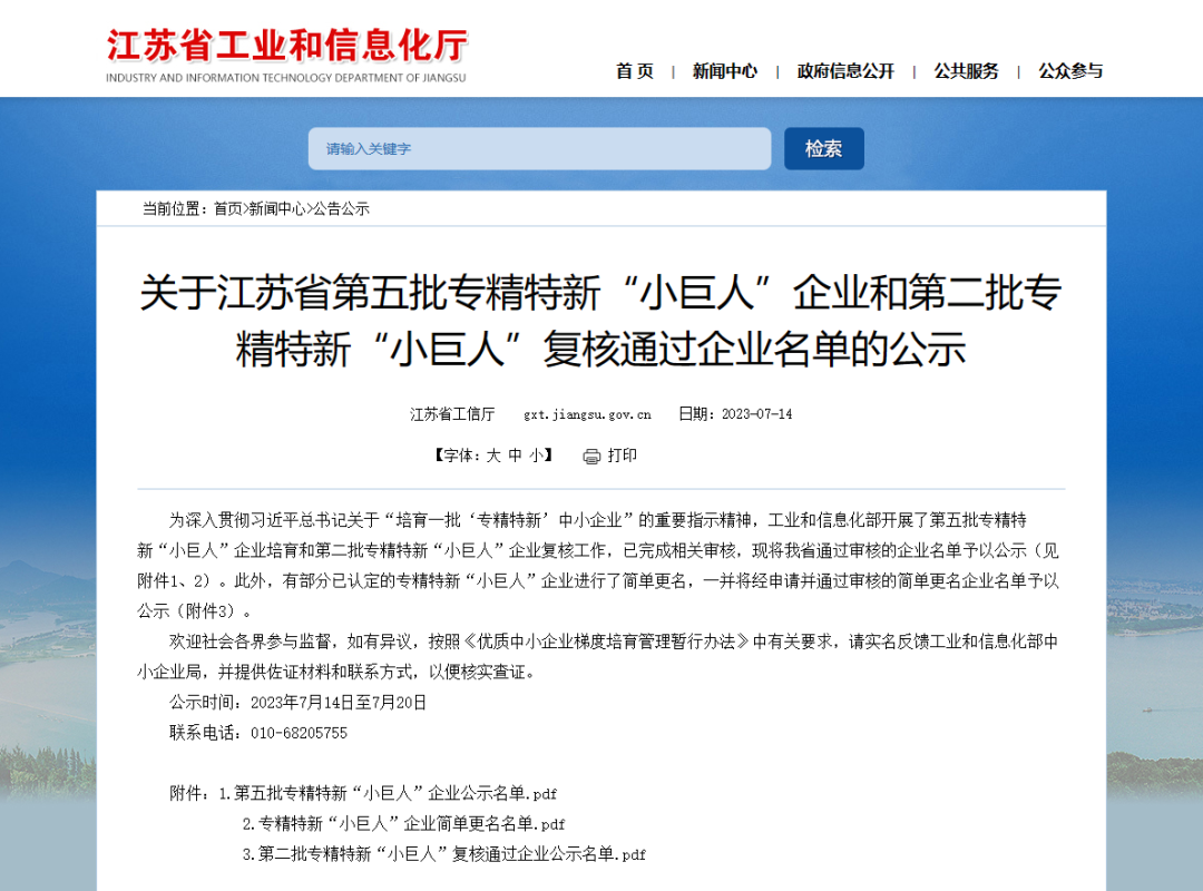 7月14日,江蘇省工信廳發布了第五批專精特新“小巨人”企業和第二批專精特新“小巨人”企業復核名單,開發區5家企業入選國家級專精特新“小巨人”企業...